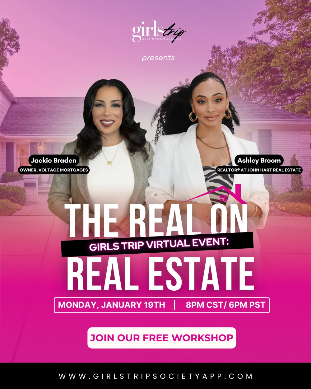 Grab your girls and tap in π‘β¨ for an empowering Girls Trip Society virtual meetup all about getting real with real estate in 2026. Whether youβre preparing to buy your first home, already own and are planning your next move, or just want clarity on what the market is doing, this conversation will break down real steps, smart strategies, and what lenders actually look for π°π. Everything is accessed through the Mighty Networks app. Just download it on your phone and look for Girls Trip Society.